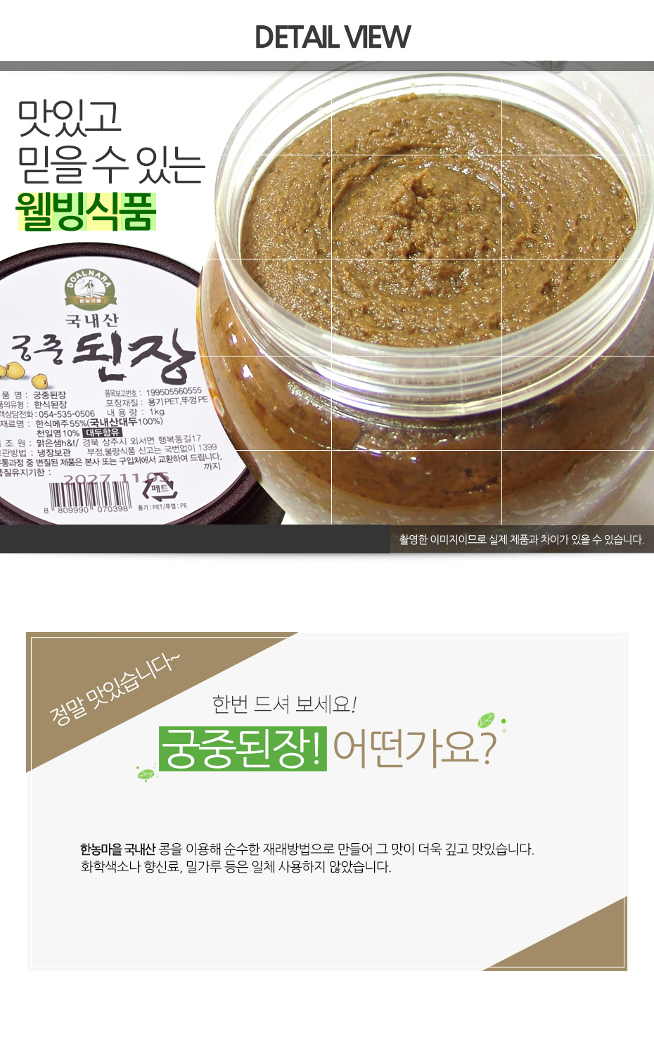 원재료명 및 함량한식메주 55%(대두,국산유기농 100%), 천일염10%(국내산)