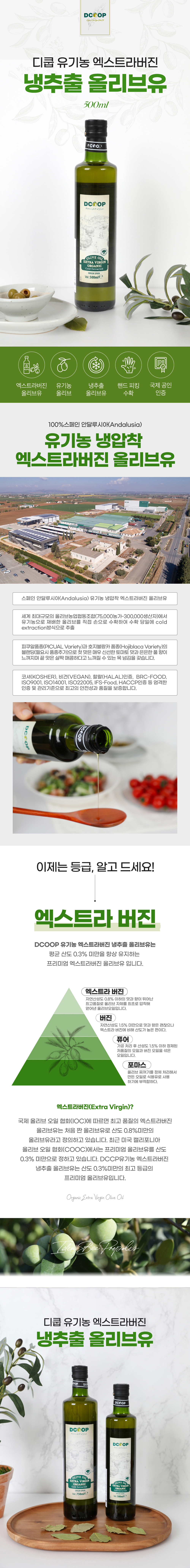 디쿱 유기농 냉압착 엑스트라버진 올리브유 500ml