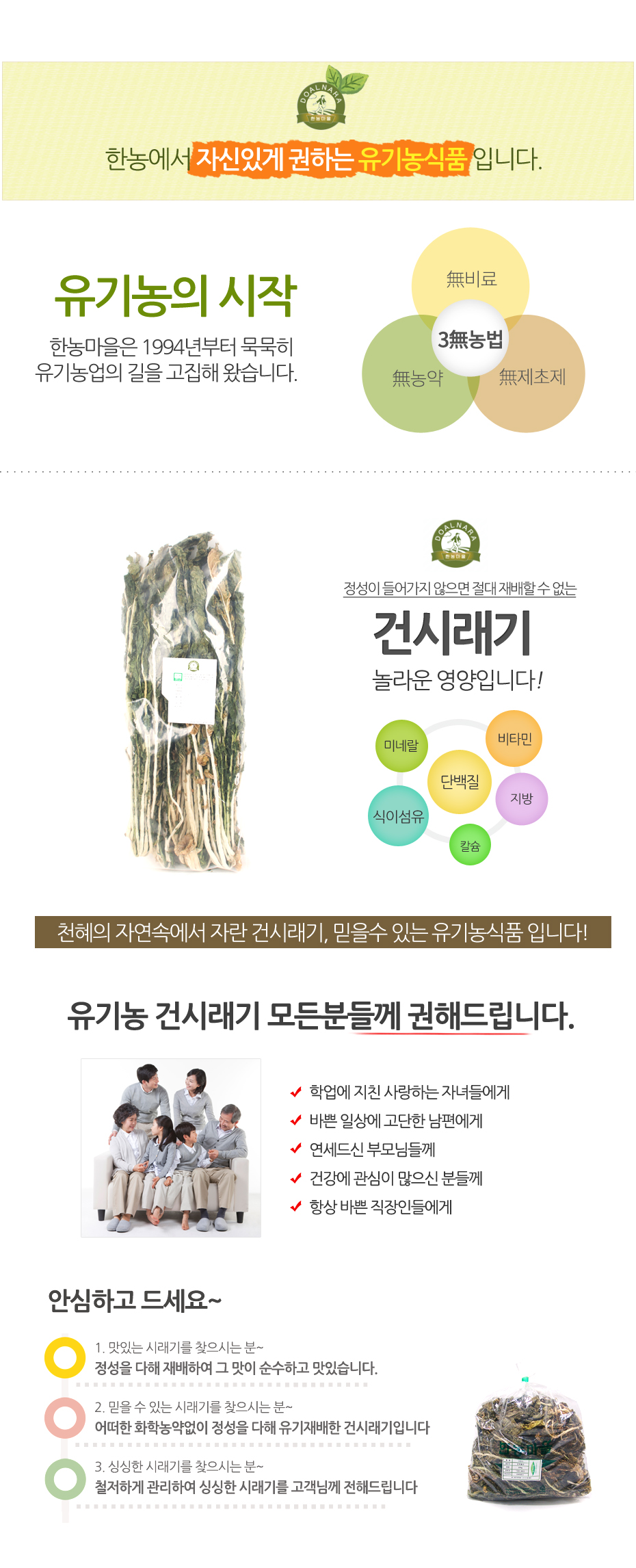 식품의 유형유기농 시래기 내용량200g 원산지생산자 : 유청수 / 소재지 : 경북 울진군 서면 왕피리 원재료명 및 함량유기농 시래기 100% (국내산) 소비기한유기농 시래기 100% (국내산) 보관방법/섭취방법직사광선을 피하고 서늘한 곳에 보관하세요. 수입원 및 판매원한농유기농건강체험촌(영) 경북 상주시 외서면 낙원동길 161-6 소비자 상담실054-535-7090